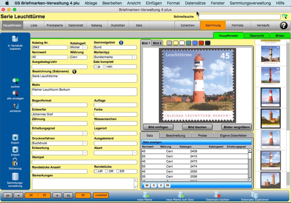 Natürlich können Sie mit dem Programm auch alle anderen Briefmarken verwalten.
